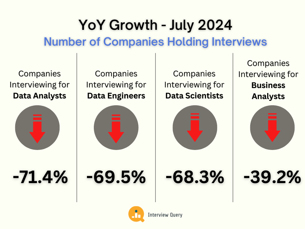 The economy has been recovering at an annualized growth rate of 2.8% during Q2 2024. After workforce adjustments during mass layoffs in 2023, the data science job market is on the rise.