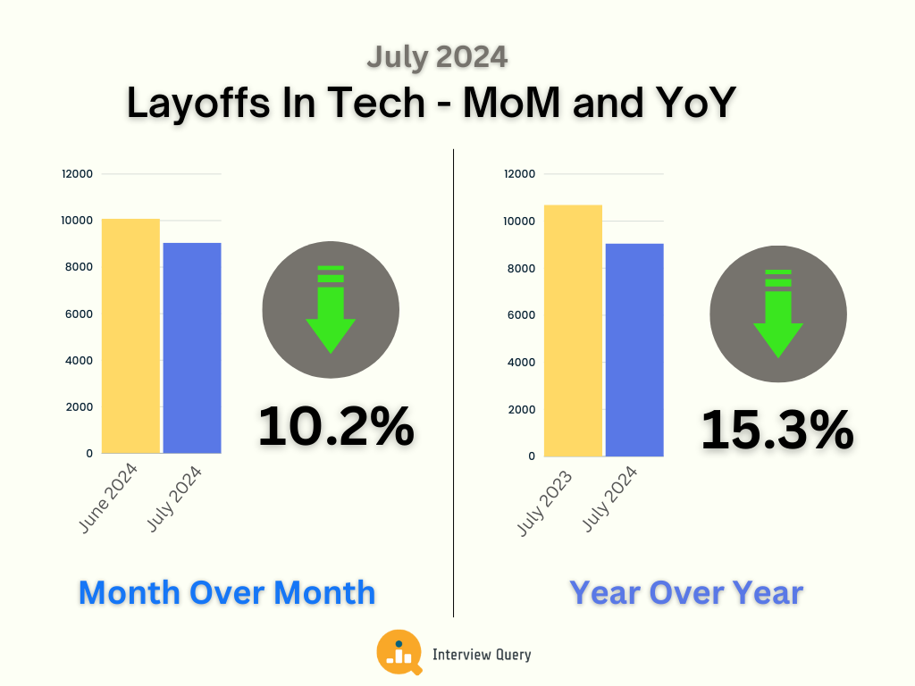 Layoffs for June 2024 have dropped 10.2% month over month and 15.3% year over year.