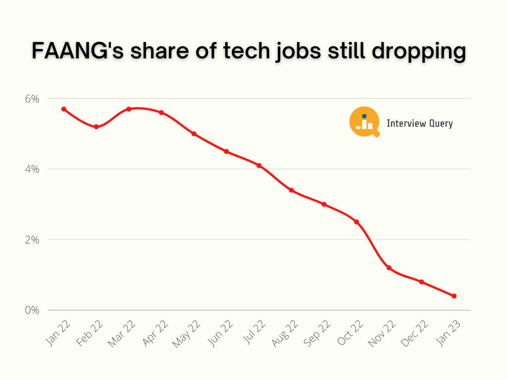 In just one year, FAANG’s share of tech job openings dropped from 5.7% to 0.4% of the total job market.