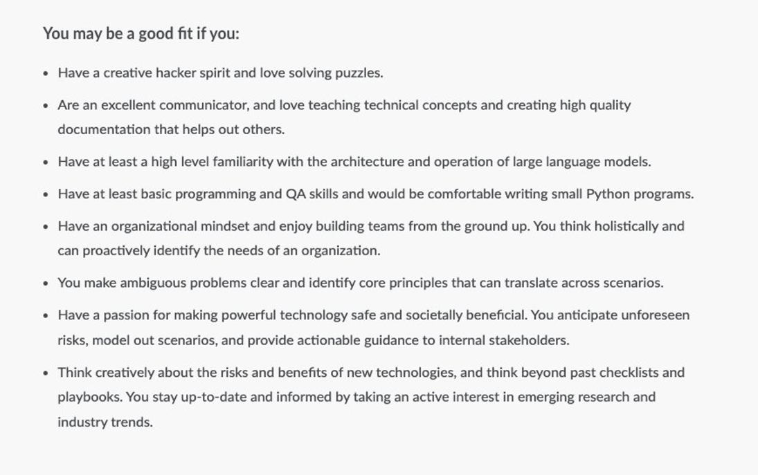 This is a field that has existed for less than two years, so most employers aren’t expecting 10+ years of experience in AI and LLMs (hopefully).