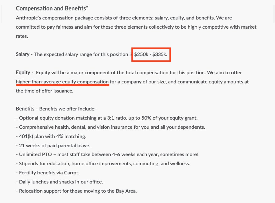 Industry demand for these positions has contributed to extremely high pay. For example, Anthropic has a job opening for a “Prompt Engineer and Librarian” with a 300,000 USD annual salary. For engineers who can work on AI and LLM models, there’s a median salary of 900,000 USD.