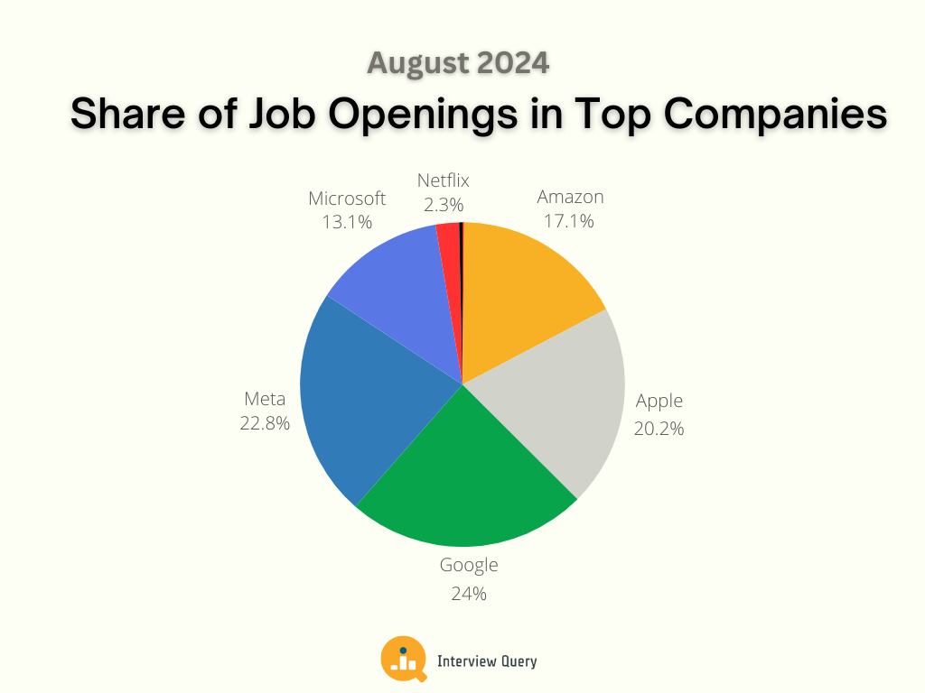 In August 2024, Google posted the most job openings among FAANG and other top companies, with Meta close behind.